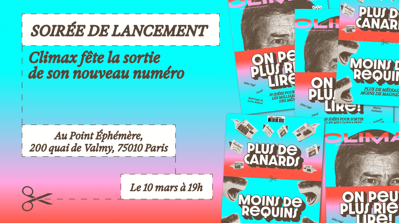 Vous en avez marre du froid et de la grisaille ambiante ? Le mardi 10 mars, rejoignez les équipes de Tech Trash et Climax au Point Éphémère (Paris Xe) pour une méga fiesta : le lancement du 10e numéro print de Climax !