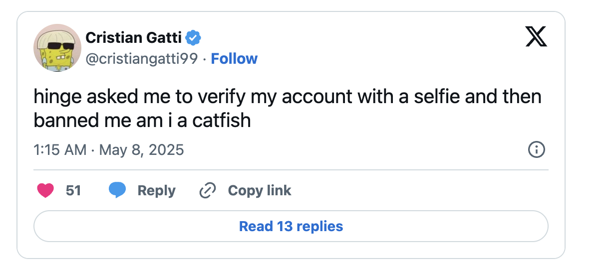 Dernière sommation ! Ces dernières années, des milliers d’utilisateurs ont été bannis des applis de rencontre sans la moindre explication, et surtout : sans AUCUN recours. Certes, la plupart des bans sont justifiés (catfish, bots et autres harceleurs), mais dans d’autres cas, ils sont tout simplement arbitraires, flous et hasardeux. Dans un super article à lire ici, le média Mashable est parti à la rencontre de ces coeurs éjectés par erreur du marché de l’amour : profils signalés par un ex revanchard, un utilisateur pas hyper content d’avoir été ghosté, ou simplement par une erreur d’algorithme (qui peut parfois confondre les vrais profils avec des profils de bots). Rien qu’aux États-Unis, Hinge aurait reçu plus de 15 000 plaintes d’utilisateurs soudainement éjectés, sans avertissement, ni même un petit message de politesse. Euh…